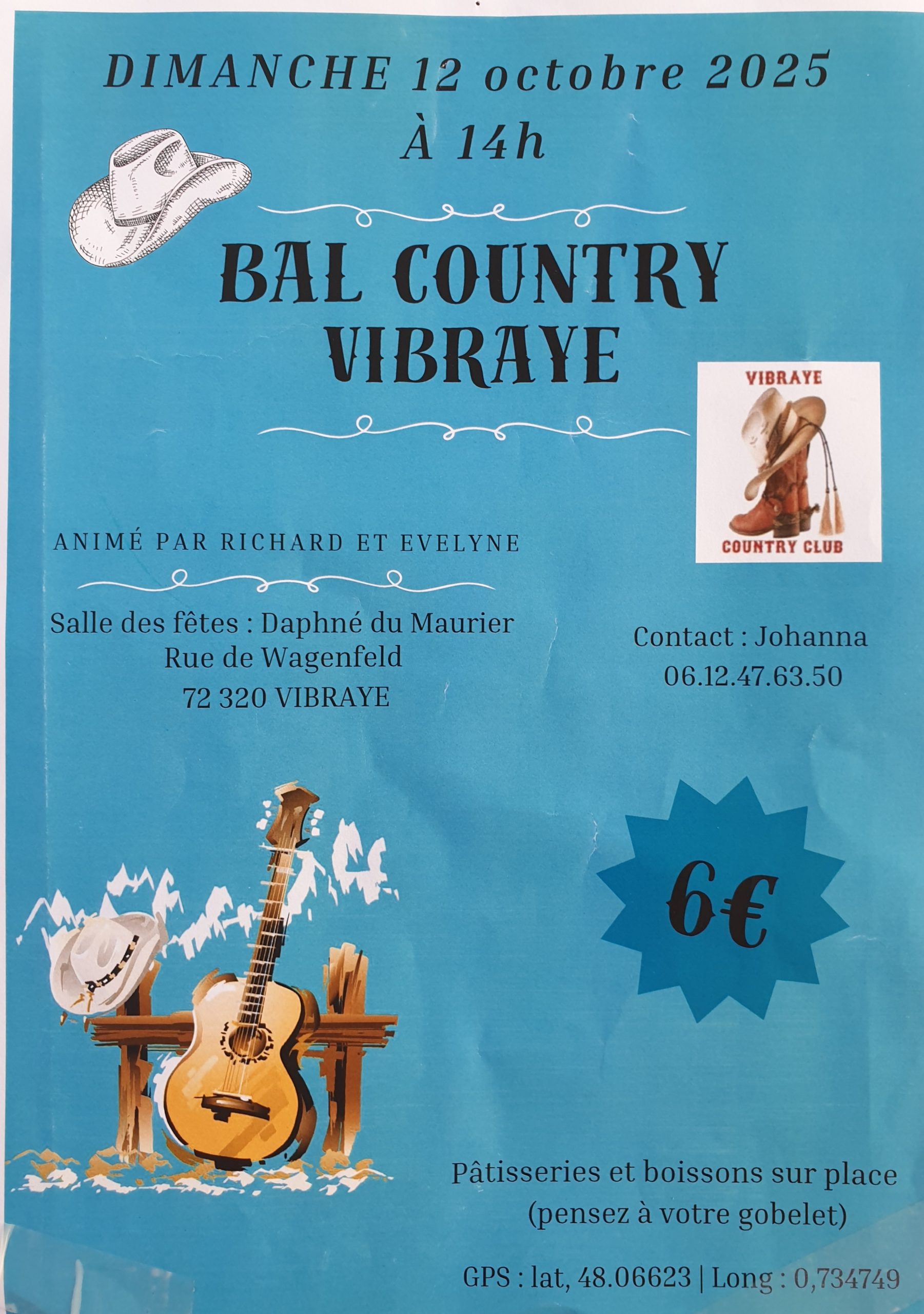 Dimanche 12 à 14h : Bal CD organisé par Vibraye Country Club à Vibraye (72) – Affiche – Playlist –