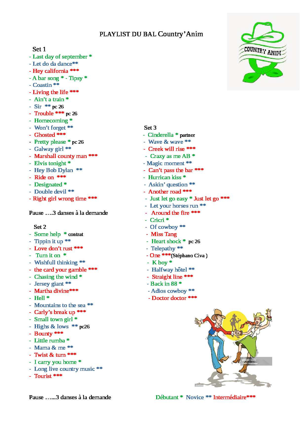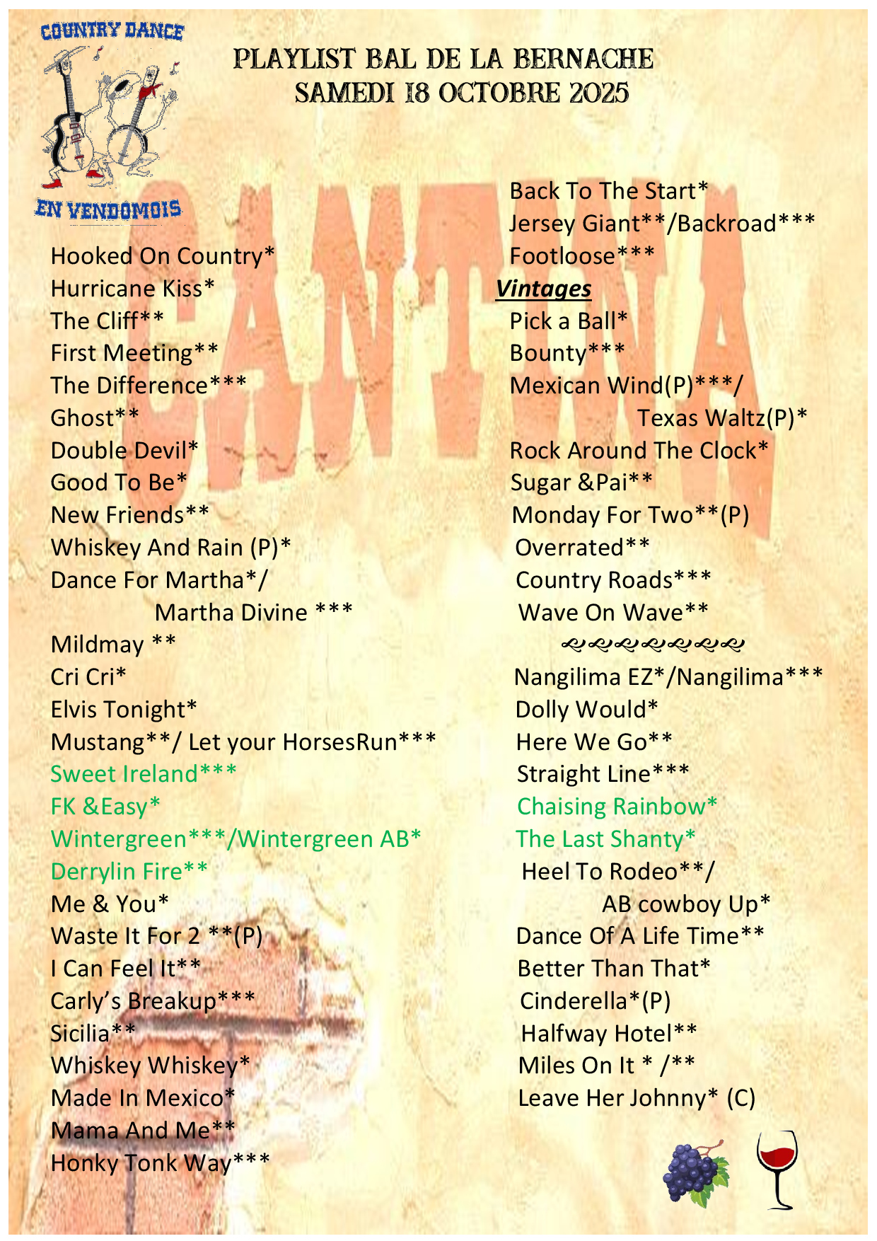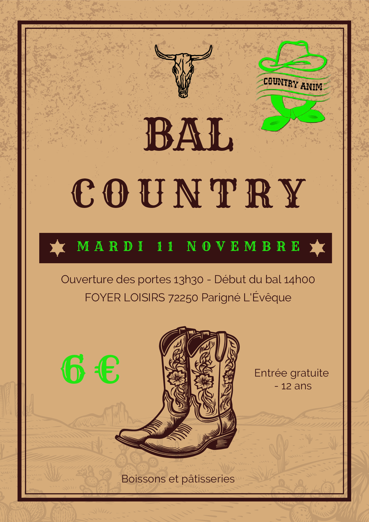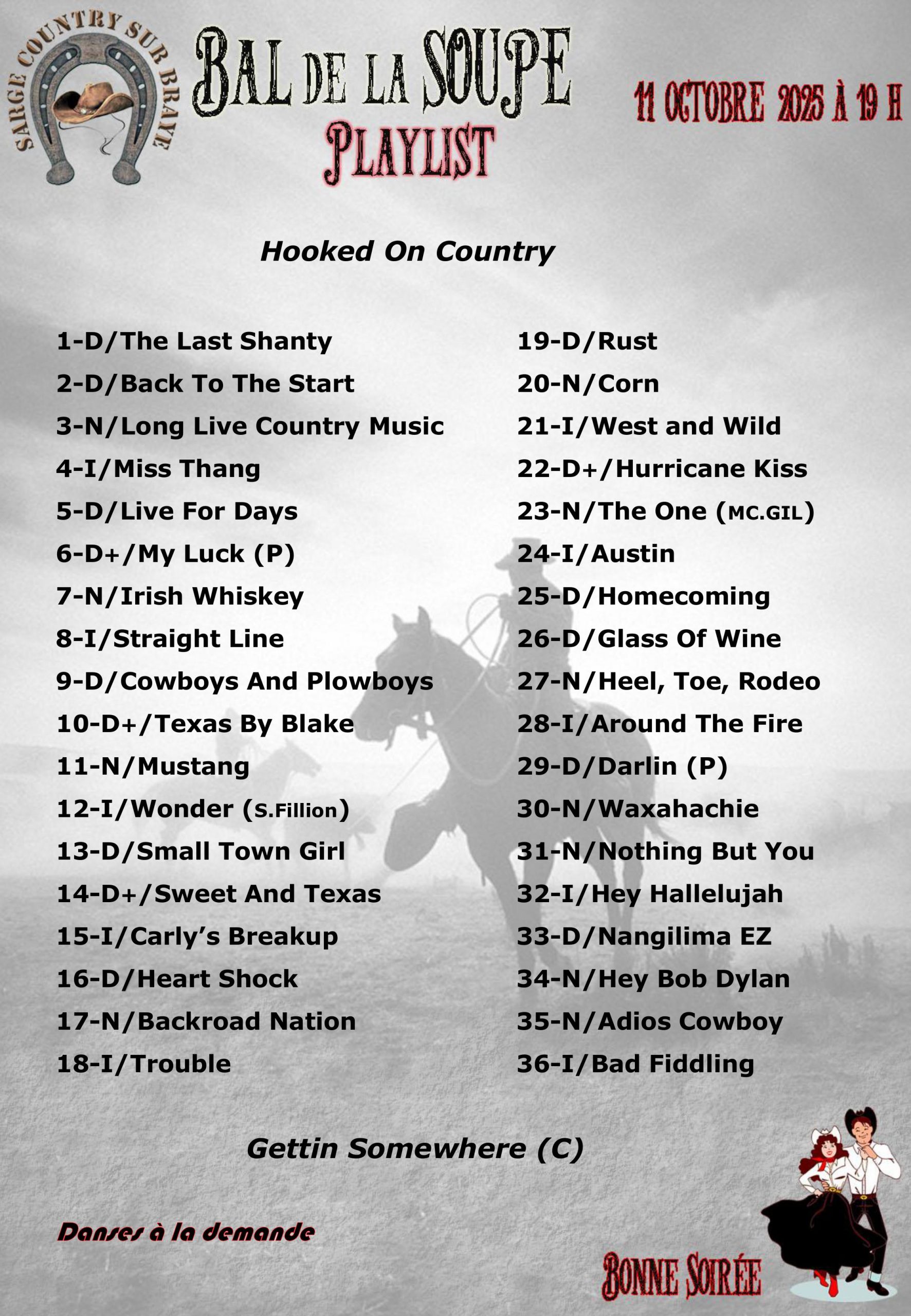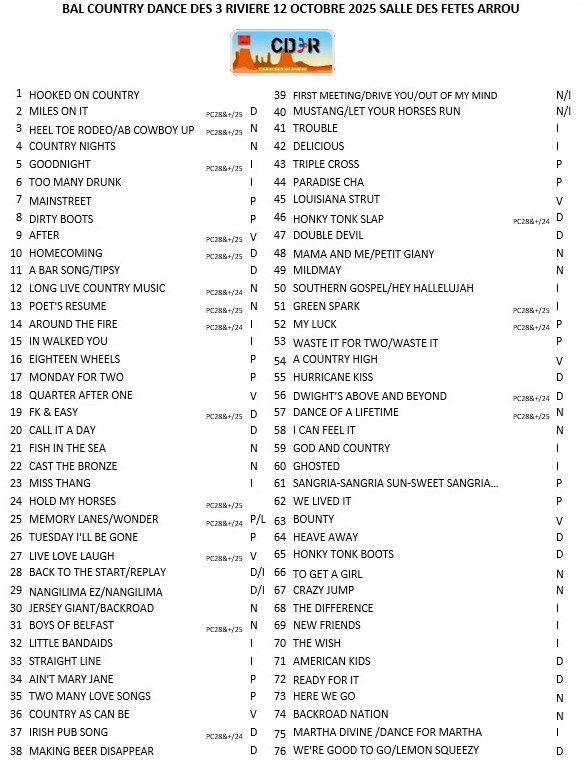 Mardi 11 à 14h : Bal CD organisé par Country Anim à Parigné L’Evêque (72) – Affiche – Playlist –