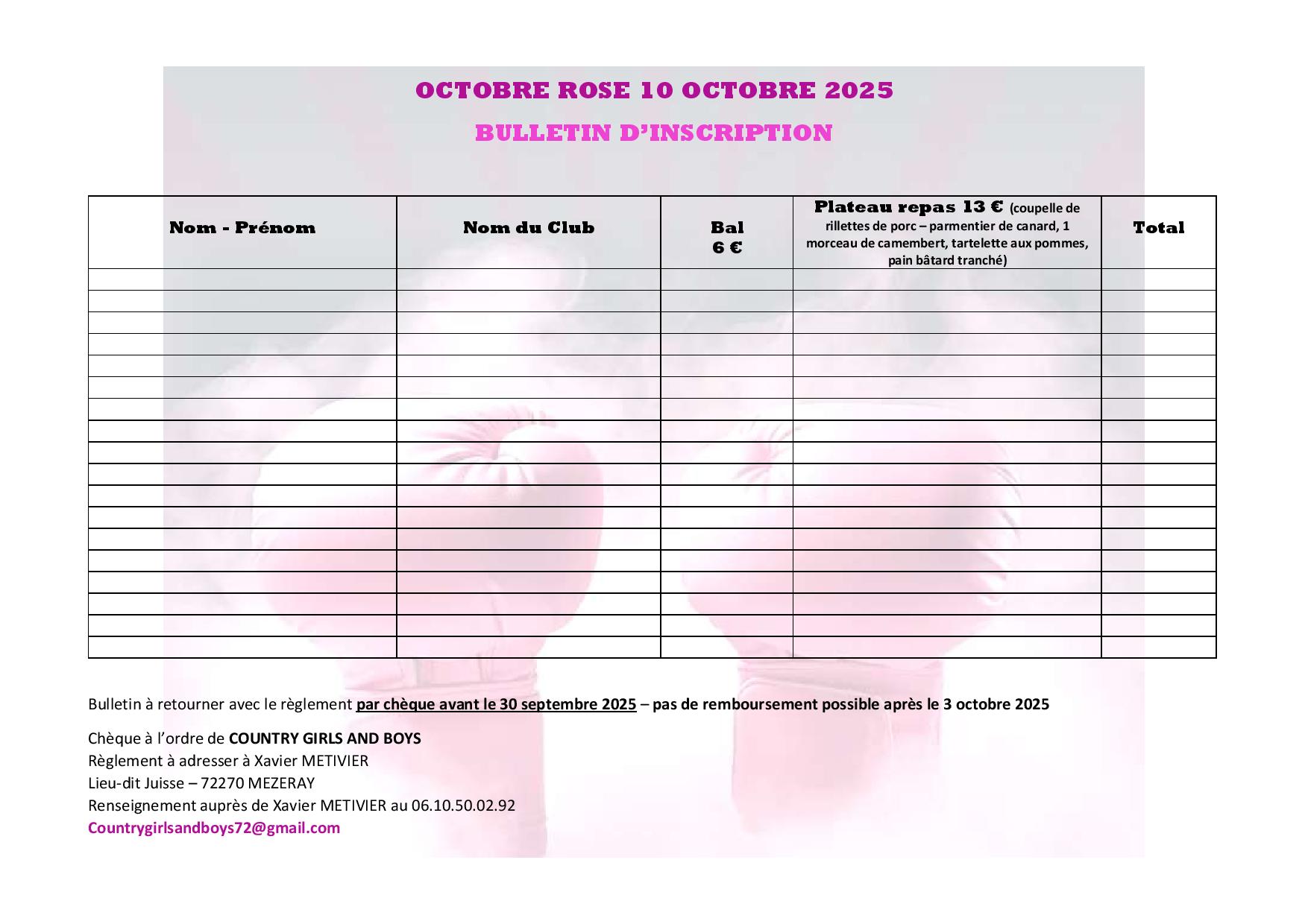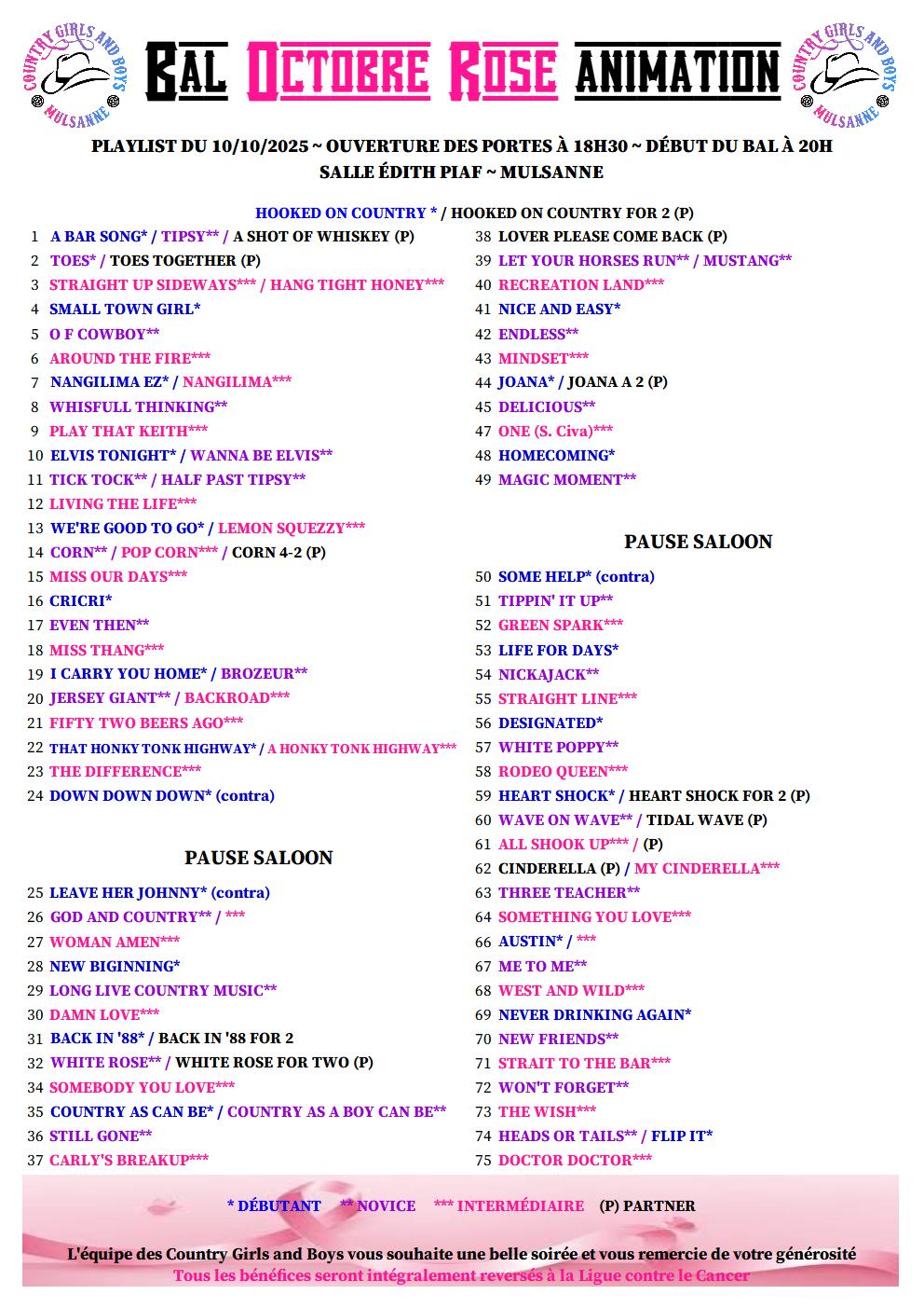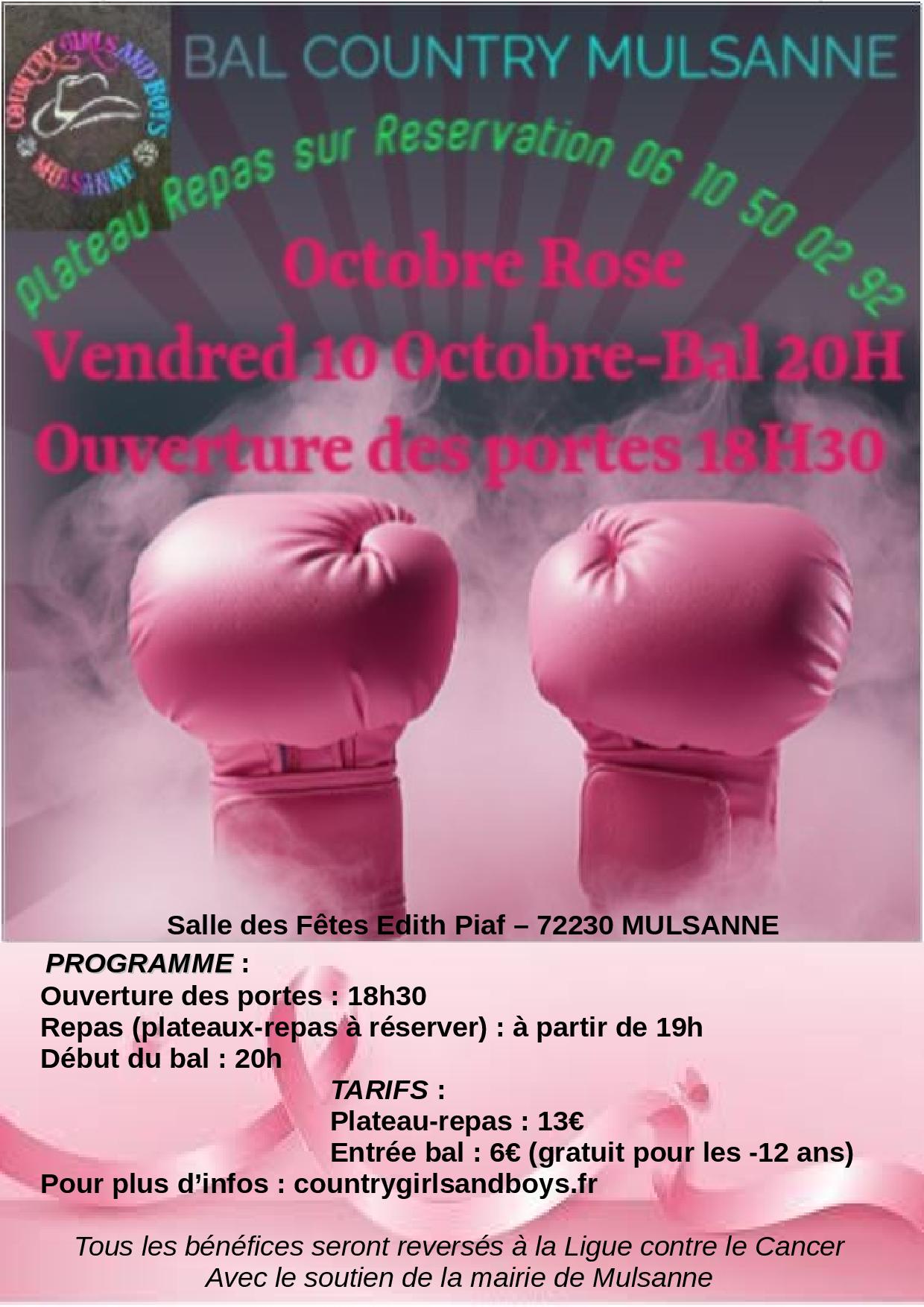Vendredi 10 à 20h : Bal CD au profit d’Octobre rose organisé par Country Girls and Boys à Mulsanne (72) – Affiche – Bulletin d’inscription – Playlist –