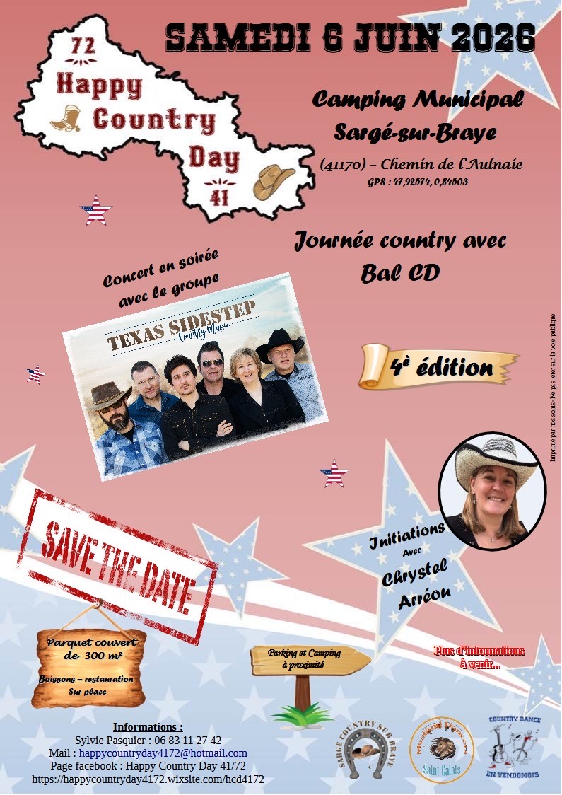 Samedi 6 : Happy Country Day 41/72 à Sargé sur Braye (41) avec Christel Arréou et le groupe Texas Sidestep – Affiche –