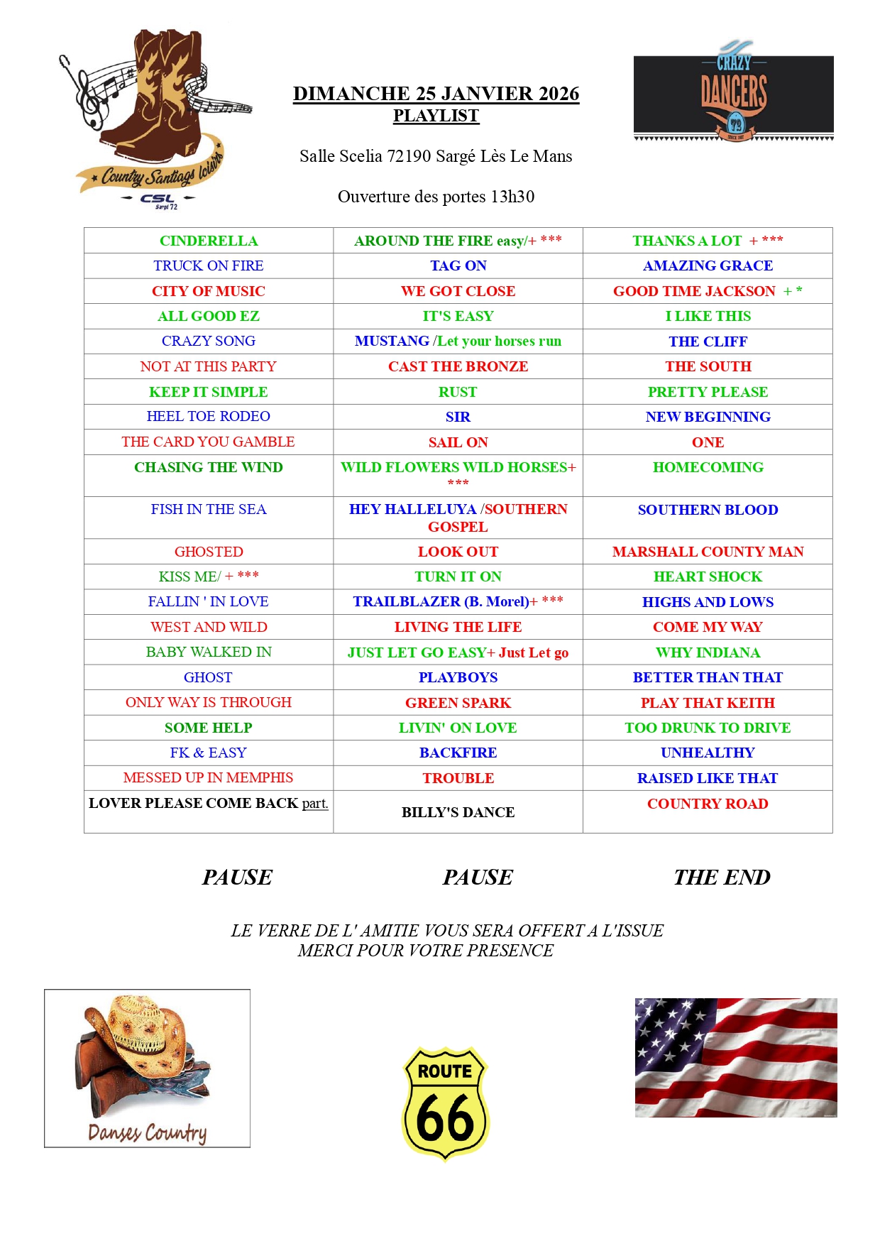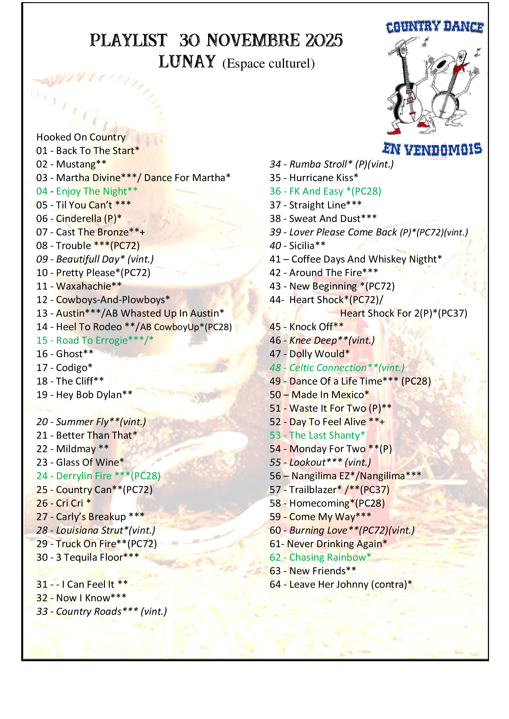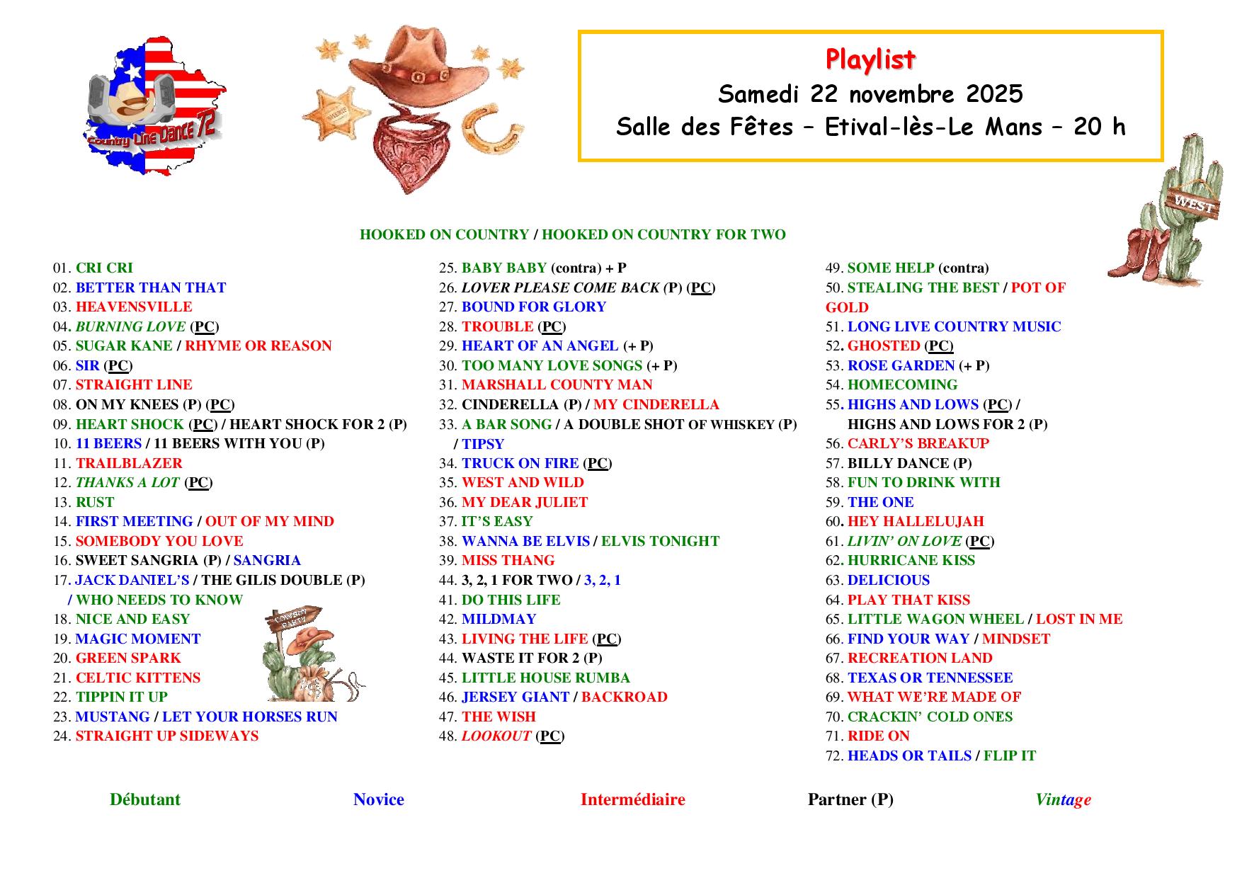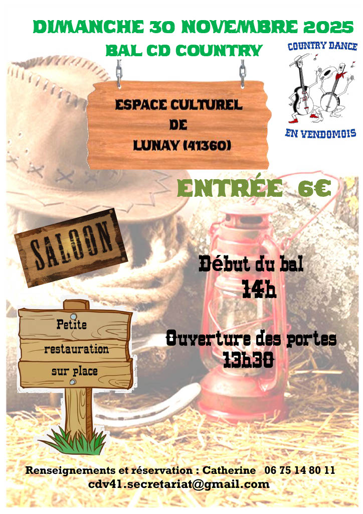 Dimanche 30 à 14h : Bal CD organisé par Country Dance en Vendomois à Lunay (41) – Affiche – Playlist –