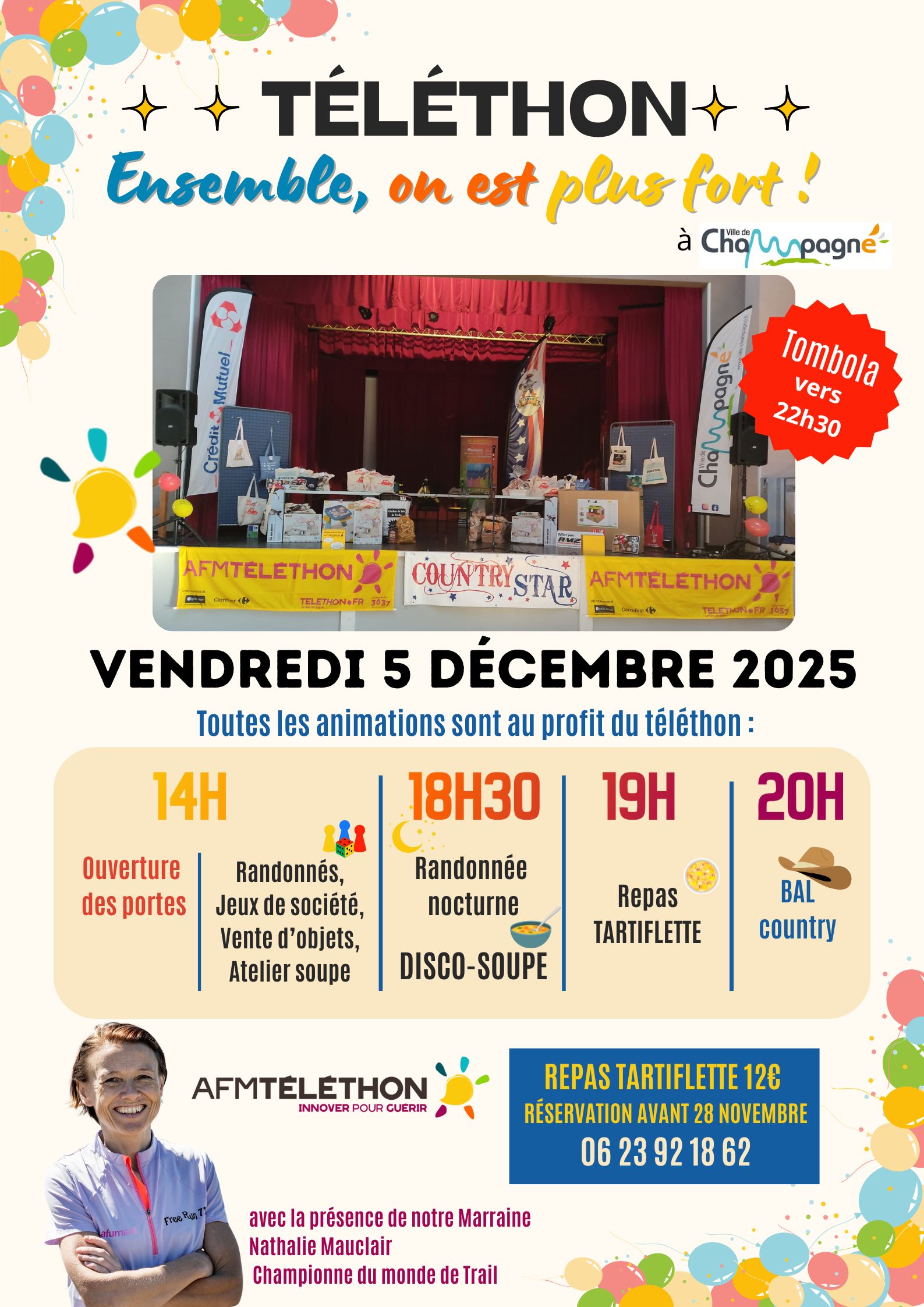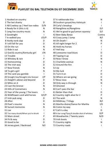 Vendredi 5 à 19h : Bal CD au profit du Téléthon organisé par Country Star à Champagné (72) – Affiche – Playlist –
