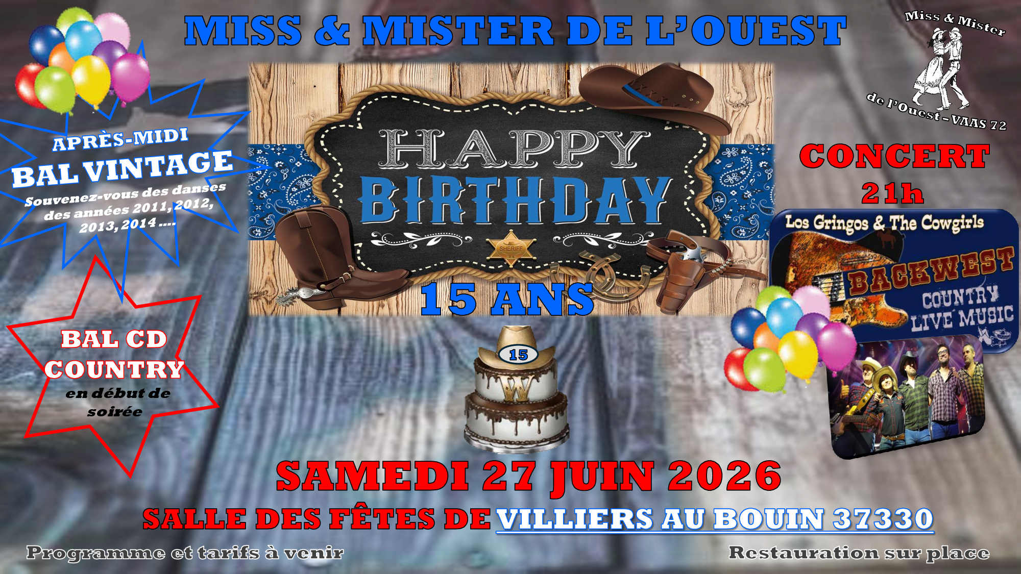 Samedi 27 : Bal organisé par Miss et Mister de l’ouest pour les 15 ans du club à Villiers au Bouin (37) – Affiche –