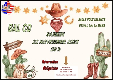 Dimanche 15 à 14h : Bal CD organisé par Mustang Dancers à Saint Calais (72) –