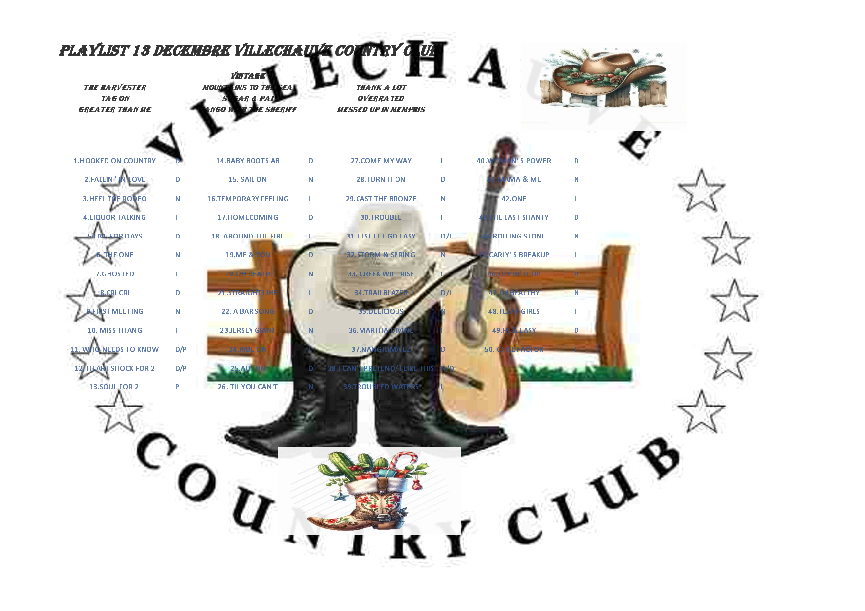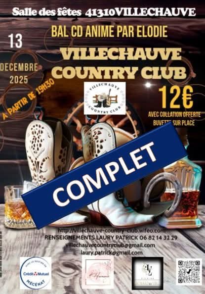 Samedi 13 à 19H30 : Bal CD organisé par Villechauve Country Club à Villechauve (41) – Affiche – Bulletin de réservation – COMPLET – Playlist –