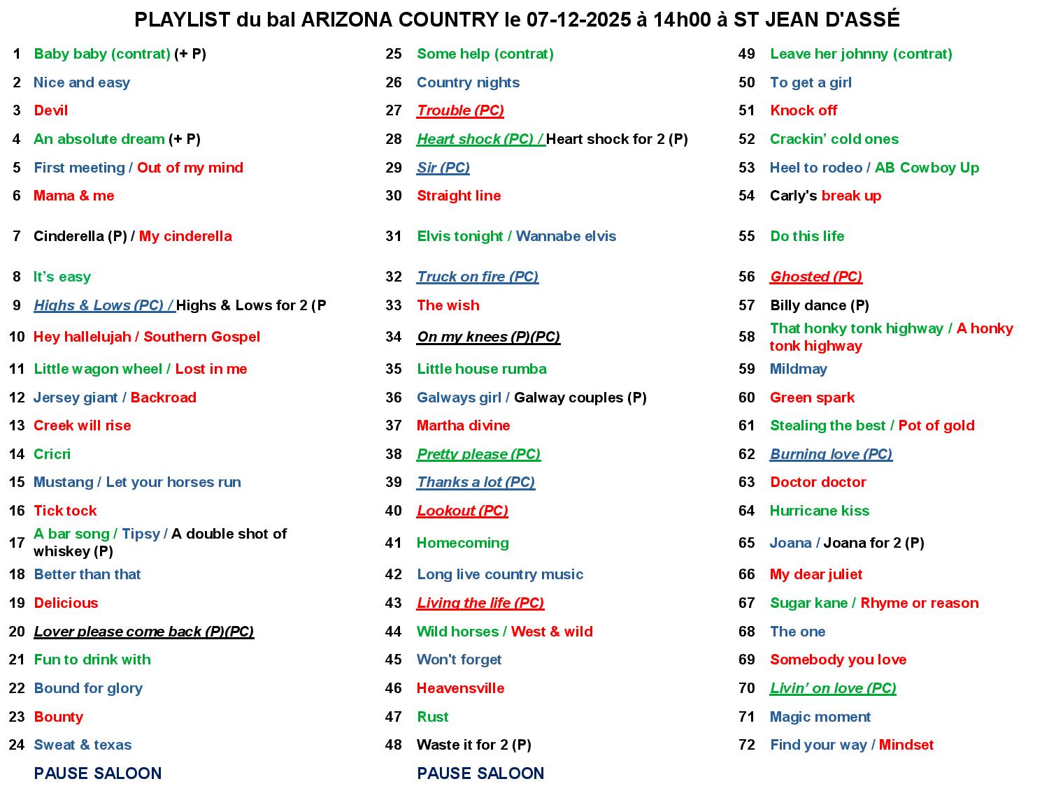 Dimanche 5 à 14h : bal CD organisé par Arizona Country à Saint Jean d’Assé (72) –