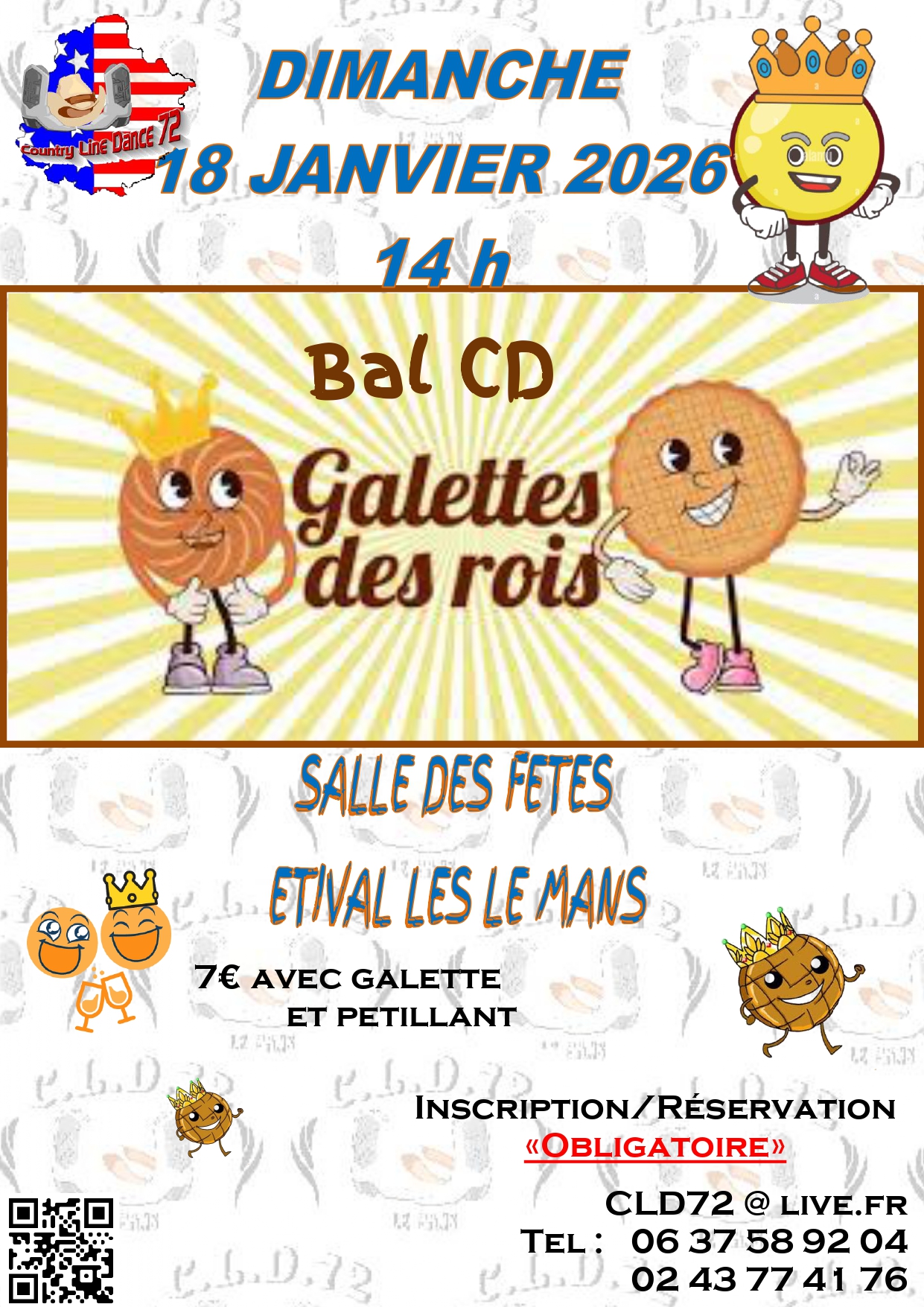 Dimanche 18 à 14h : Bal CD galette des rois organisé par le CLD 72 à Etival les Le Mans (72) – Affiche – Playlist –