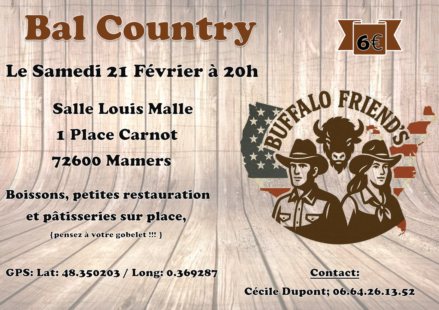 Samedi 21 à 20h : Bal CD organisé par les Buffalo Friend’s à Mamers (72) – Affiche – Playlist –